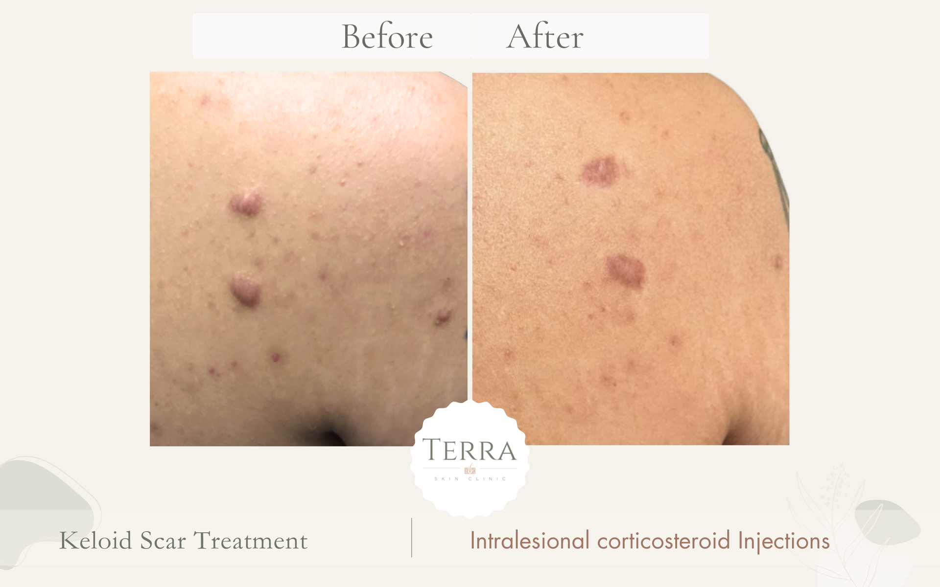 Hypertrophic scars and keloids are forms of abnormal wound healing characterized by excessive collagen deposition. Hypertrophic scars remain within the boundaries of the original injury, while keloids extend beyond and may be associated with pain or pruritus. Both can arise following trauma, surgery, or inflammation, particularly in predisposed individuals. Treatment such as intralesional steroid injection aims to flatten raised lesions, reduce erythema, and improve texture and symptom burden over time.